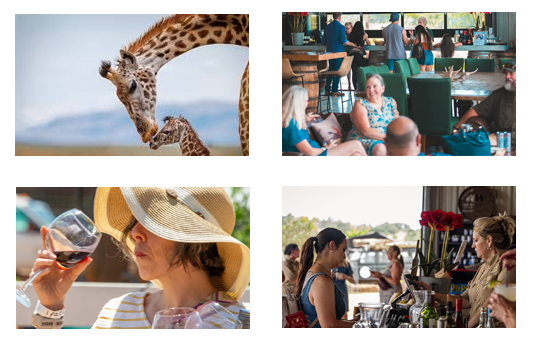 Wine tasting and Giraffe interaction on a working ranch and animal rescue where you will see and possibly meet many other exotic animals.